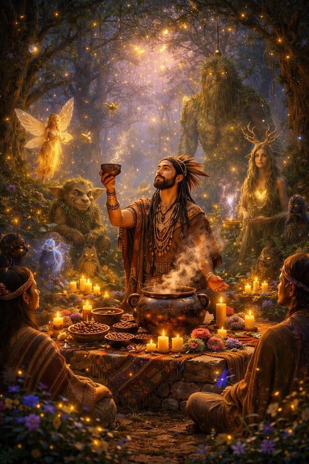 Portée par l'énergie vivante de la forêt, la cérémonie invite à s'ancrer, à ralentir et à ressentir le lien subtil qui nous unit au monde vivant. Les esprits de la forêt — symboles de sagesse, de protection et d'harmonie — nous rappellent que nous faisons partie d'un tout plus vaste.
