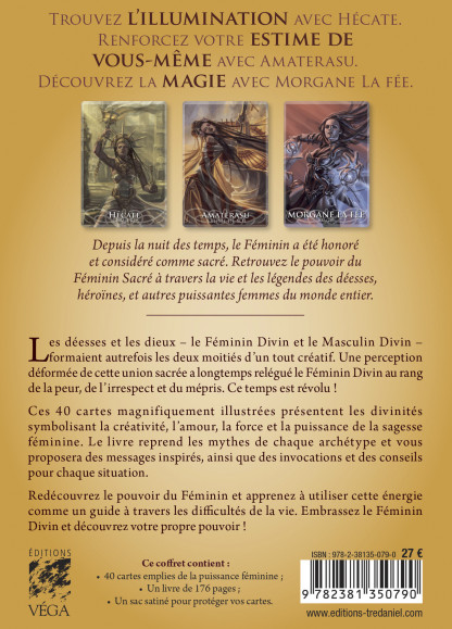 Trouvez l'illumination avec Hécate. Renforcez votre estime de vous-même avec Amaterasu. Découvrez la magie avec Morgane La fée. Depuis la nuit des temps, le féminin a été honoré et considéré comme sacré. Retrouvez le pouvoir du Féminin Sacré à travers la vie et les légendes des déesses, héroïnes, et autres puissantes femmes du monde entier.